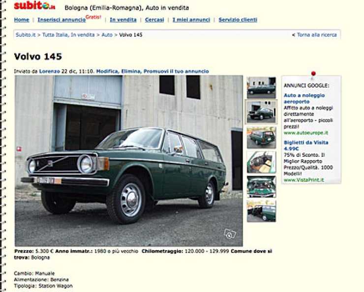 Vi hoppar ut i Europa och kollar in utbudet på italienska Blocket. Och kolla vilken snygg Volvo 145 vi hittade!