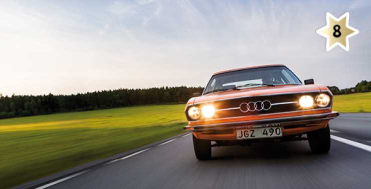 Det omstartade Audi behövde i slutet av 1960-talet en toppmodell som skulle hjälpa till att höja statusen runt märket som redan vid den här tiden börjat arbeta enligt devisen ”Vorsprung durch Technik”. Svaret kom 1970 i form av en coupévariant av familjebilen Audi 100. Elegant linjespel, rymlig interiör och framhjulsdrift hörde till försäljningsargumenten liksom begrepp som negativ styrradie och låg ofjädrad vikt. Malte Jansson från Nacka äger en av 29 svensksålda -75:or med automatlåda och mycket talar för att hans bil är den finaste av dem alla. Den 1970-talstypiska kulören och den gröna inredningen vittnar om en annan tid – en tid att längta tillbaka till. Det var Maltes far som köpte bilen ny och förutom en omlackering på 1980-talet är Audin i orört originalskick. Okej, de svarta ytterbackspeglarna är inte de ursprungliga.