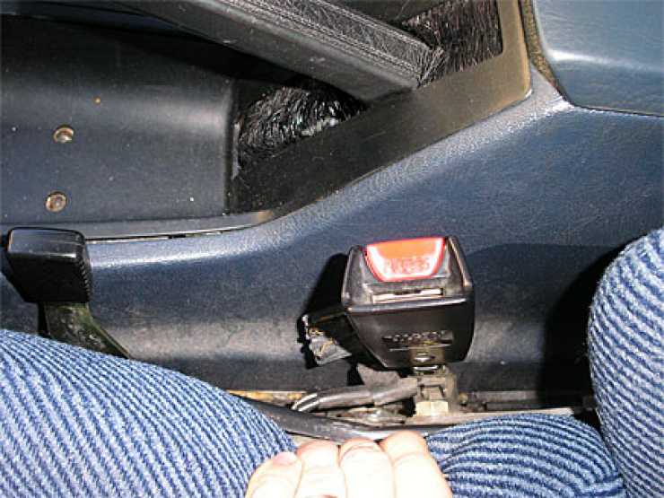 avskavd elkabel som går till säkerhetsbälteshållaren. Sansad efter