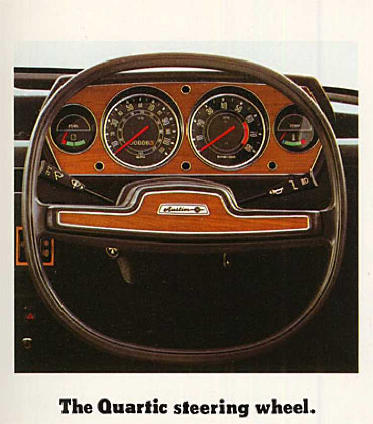 Så här skulle återförsäljarna skylta vid premiärvisningen av Allegro ansåg British Leyland. Bilden är ritad innan beslutet fattats om den fyrkantiga ratten! Allegro formgavs in-house av Harris Mann som också ansvarade för, en del säger var skyldig till, Triumph TR 7 och Leyland Princess.