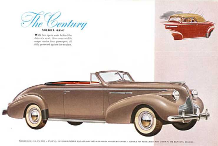 Den större motorn i det mindre chassiet, det var Buicks recept för den första generationen Century 1936-1942. Bilden visar en 39:a - kanske den vackraste USA-bilen det året. Motorn var en rak 8:a på 320 cid och 140 HP.