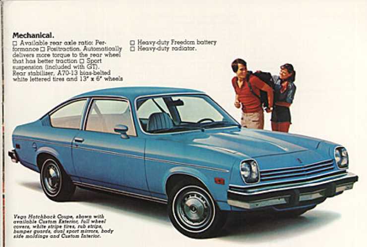 Med breda fälgar och svärtad grill såg Vega inte ut som den ekonomibil den faktiskt var. Skivbromsar var nu en självklarhet i Detroit och vägegenskaperna hos Vega med GT-fjädring fick godkänt av sportbilstidningen Road&Track.