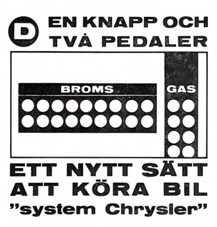 En knapp och två pedaler gällde inte efter 1964. Chrysler återgick till rattspak 1965 i stället för de tryckknappar man haft sedan 1956.