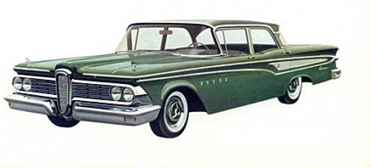Med det nya märket Edsel skulle Ford Motor Company 1958 öka sitt utbud i det lukrativa mellanprissegmentet där man dittills enbart haft Mercury. Det gick inte så bra, Edsel lades ner redan i början av sitt tredje modellår vilket var 1960. På bilden en Corsair av Edsels första årsmodell 1958. Med grundkaross delad med Mercury var Corsair nummer två på rangskalan efter Citation. De mindre Ranger och Pacer delade kaross med Ford.