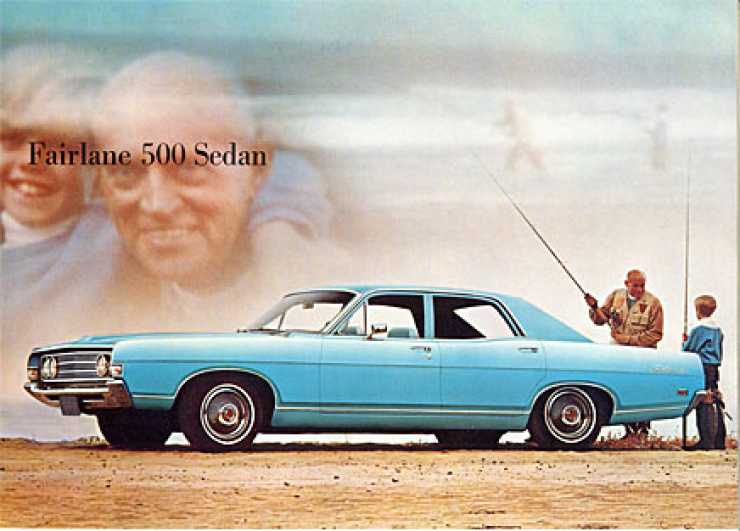 Året därpå - 1969 - är Fairlane 500 förvisad till pensionärsbil. Den snälle Granpa, som säkert beställt sin bil med sexa, tar sonsonen med på fisketur. Om han vill byta bil 1971 får han ta en Torino, både Falcon och Fairlane är nedlagda.