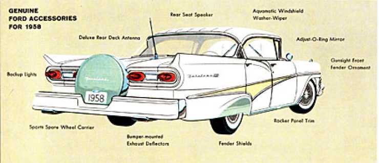 Ford fortsatte 1958 med en inte helt lyckad facelift av 57:orna. Den redan kromtunga Fairlane 500 kunde förses med ännu mera krom som options.