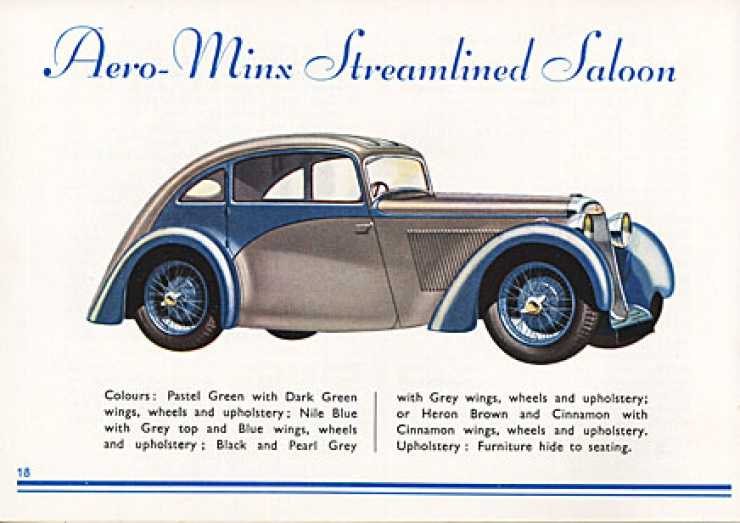 En sportbil var Aero-Minx med trimmad motor och splinesmonterade ekerhjul. Strömlinjeform var högsta mode 1934 men Aero-Minx fanns också i två öppna varianter i traditionell stil.