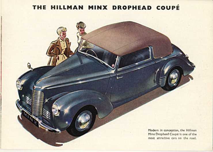Londons första bilsalong efter kriget ägde rum 1948. Där visade Rootes en helt ny Hillman Minx med USA-inspirerade linjer, inte så konstigt för Raymond Loewy - skaparen av Studebakers 47:or- hade konsulterats.