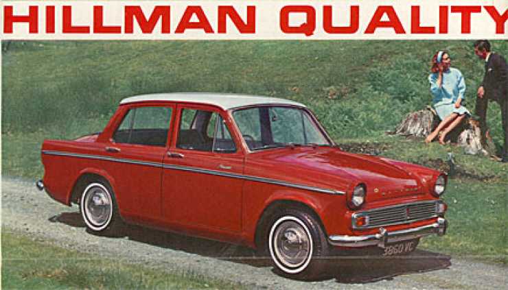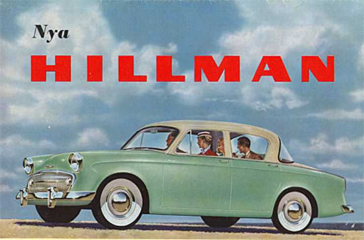 Hillman var det enda engelska märke som i broschyrerna körde med vita däcksidor. Det passade fint på cabrioleten vars sufflett hade tre positioner, täckt, öppen och de ville, det vill säga bara öppen över framsätet.