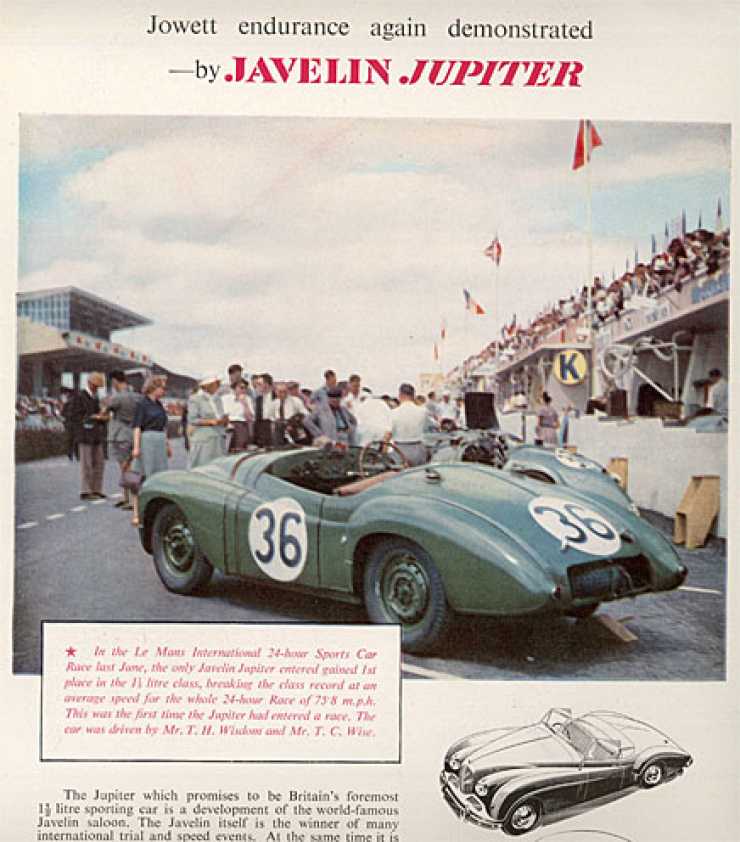 I LeMans 1950 ställde Jowett upp med en Jupiter som inte bara vann 1½-liters klassen utan också satte nytt klassrekord för snittfart under 24-timmarsloppet. Bra reklam inför modellens säljstart några månader senare.