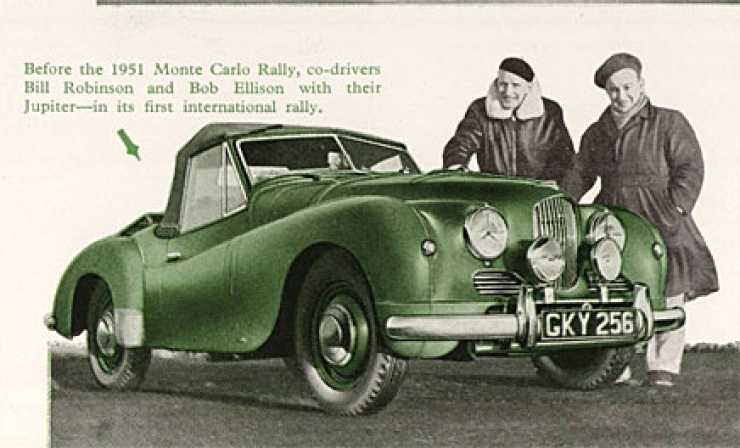 En fabriksbil deltog också i Monte Carlorallyt 1951 och vann där sin klass. Dessa omedelbara tävlingsframgångar låg bakom Jupiters slogan "The car that leaped to fame!"