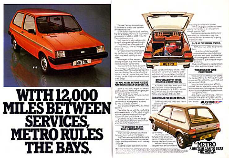 Austin Mini Metro var bilen skulle "send the foreigners back where they belong" enligt reklamen. I klartext betydde det att nu fanns det inga som helst skäl längre för engelsmännen att köpa utländska bilar som Fiat 127, Peugeot 104, VW Polo, Renault 5 eller något japanskt. Och i början lydde britterna och Mini Metro blev toppsäljaren i klassen, men snart återtog Ford Fiesta titeln.