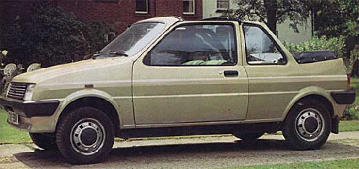 Den fristående karossmakaren Crayford hade gjort cabrioletversioner av folkbilar sedan 1962 och gjorde även ett försök med Mini Metro. Metro Politan hette modellen men inte många byggdes. Kolla färgskiftningen på demobilen.