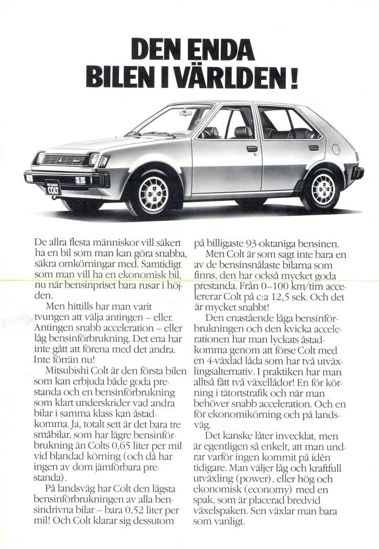 När Colt lanserades i Sverige 1981 skrädde man inte orden - den var en unik världssensation!