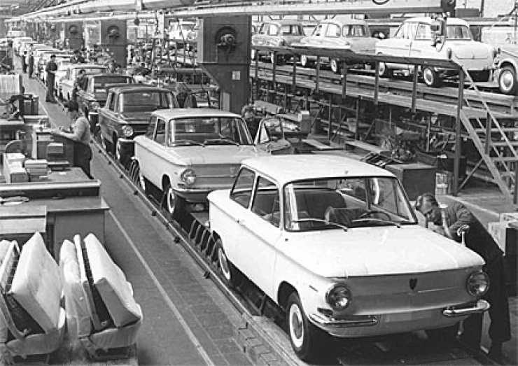 NSU Prinz 4 på fabriksbandet i Neckarsulm.