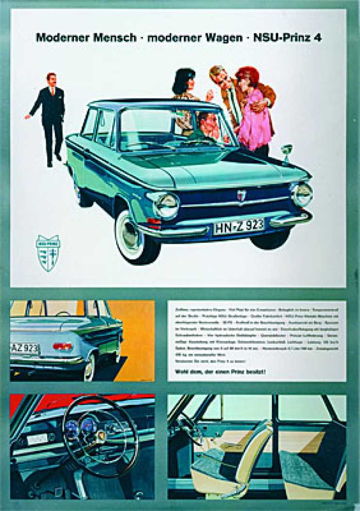 Hos tyska NSU föddes en liten Prinz 1957, det var den första bilen från NSU sedan 1930-talet. Prinz var en kompakt sedan med en tvåcylindrig luftkyld svansmotor. Året därpå kom Sport Prinz, en kupéversion designad av Franco Scaglione vid Bertone.