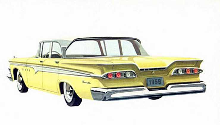 Edsel blev Fords stora flopp under 1950-talets sista år och höll på att knäcka koncernen ekonomiskt. Edsels program bestod av fyra modeller där Ranger var den billigaste och enklaste modellen byggd på ett Fordchassi. Här en från 1959.