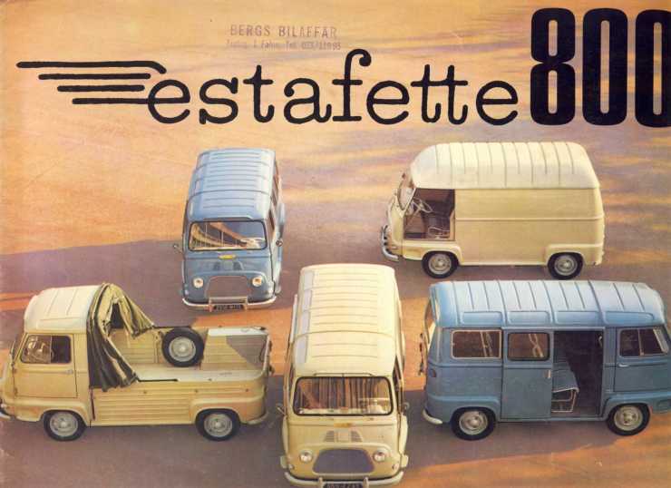 Estafette var Frankrikes svar på VW-bussen och liksom denna baserad på en småbil med motorn bak. Renaults lösning var lite smartare, för de vände på motorn och monterade den fram. Därför hade Estafette hel bakdörr och var lättare att lasta än VW-bussen.
