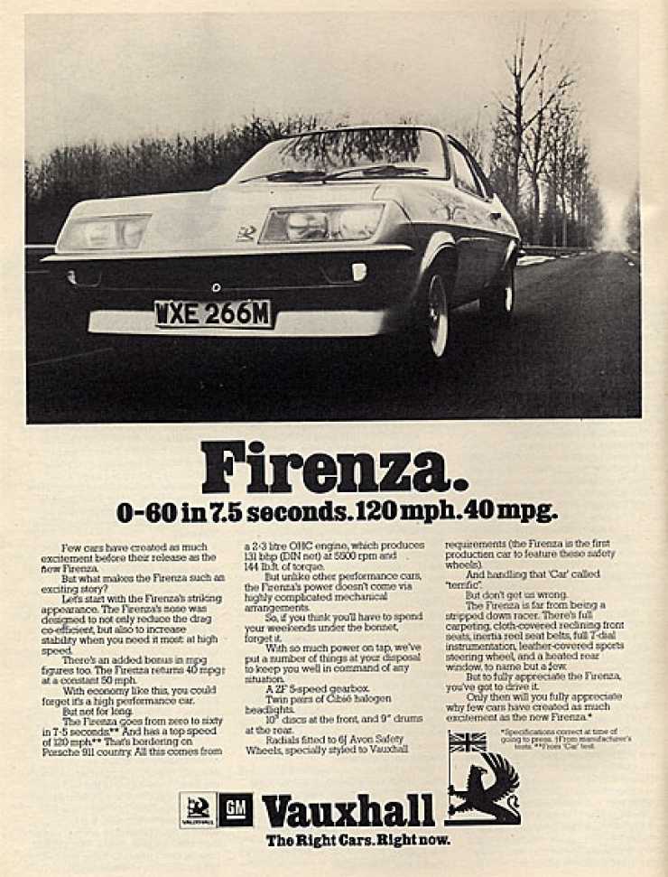 Motorn till Magnum HP som värsta modellen kallades lånades från Vauxhall Victor 2300 och levererade 132 hk med dubbla förgasare. Endast 204 ex byggdes. Vanligare var Firenza 2000 med 104 hk och den totala produktionen av Firenza stannade på 13 416 bilar.
