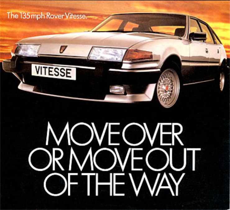 Vitesse var den sportigaste versionen av den modellserie av Rover som är känd under internkoden SD1. V8:an i lättmetall gav 190 hk och Vitesse fanns 1982-1986 och bara med manuell låda. De obligatoriska 80-talsdekalerna var mycket diskreta för Rover var ju som broschyrtexten säger ett märke av god börd. Den aggressiva texten Move over etc i öppningsbilden får väl anses vara ett olycksfall i arbetet.