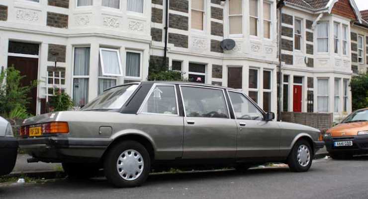 Under en promenad i Bristol i sydvästra England sprang jag på denna storstilade Ford Granada. Jag lyckades inte lista ut årsmodellen utifrån registreringsskylten, men utifrån utseendet på bilen så torde det vara årsmodell 1982-85. Säkert har den en gång använts vid högtidliga tillfällen, kanske i offentlig tjänst. Nu verkar den fungera som en extra rymlig familjebil eller kanske transportör till fotbollsmatcher. Konverteringen till högbyggd limousin gissar jag att Coleman Milne står för. Bilar som förlängts är sällan vackra, men den här måste väl ändå höra till de fulare? Halva karossen verkar komma från en tvådörrarsbil och den främre från en fyrdörrars. Knasiga proportioner blir det i alla fall.