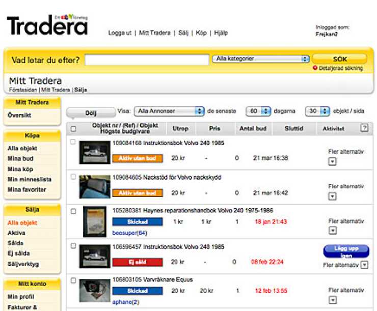 Däremot har ingen velat köpa en instruktionshandbok för Volvo 240 1985 och två lösa nackstöd att sätta på Volvos nackstöd. Så de är fortfarande ute på auktion.