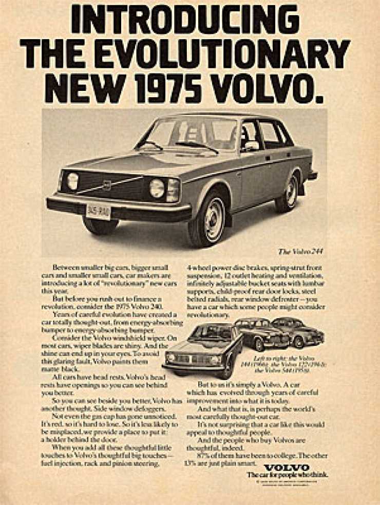 1975Försök att hålla dig vaken! Det blir roligare. Men 1975 blev det inte roligare än så är i Volvos annonser.