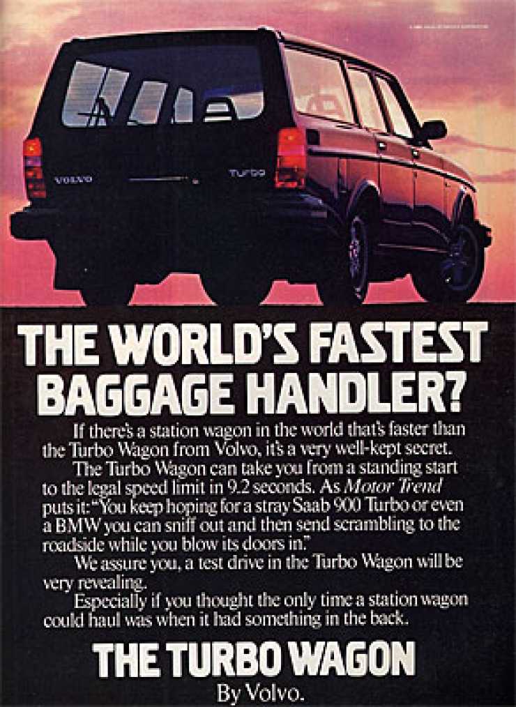 Lägg märke till en sak: Bara i de äldsta annonserna förekommer modellbeteckningen. Senare omnämns modellerna enbart som GT, GLE och Turbo Wagon. En tydlig anpassning till den amerikanska marknaden där modellnamn är vanligare och siffernamn ovanligare.