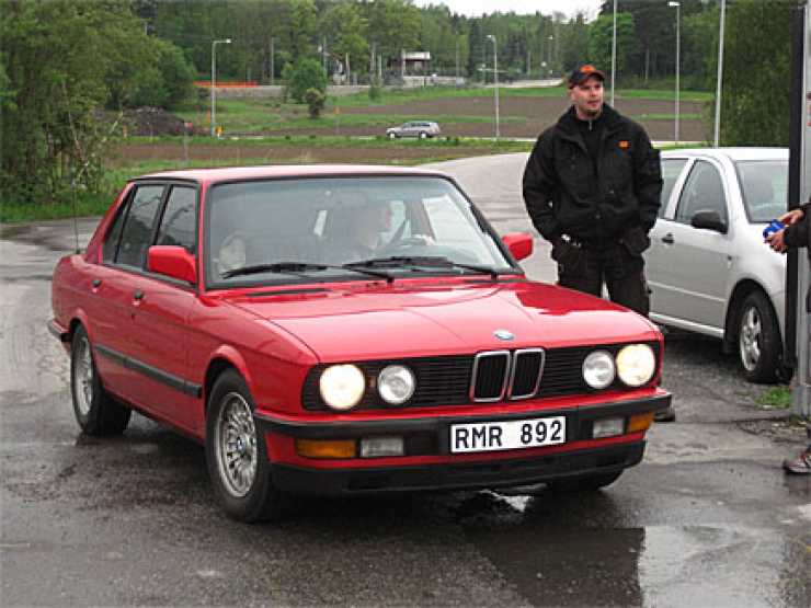 Fin BMW E28 på väg in på träffen.