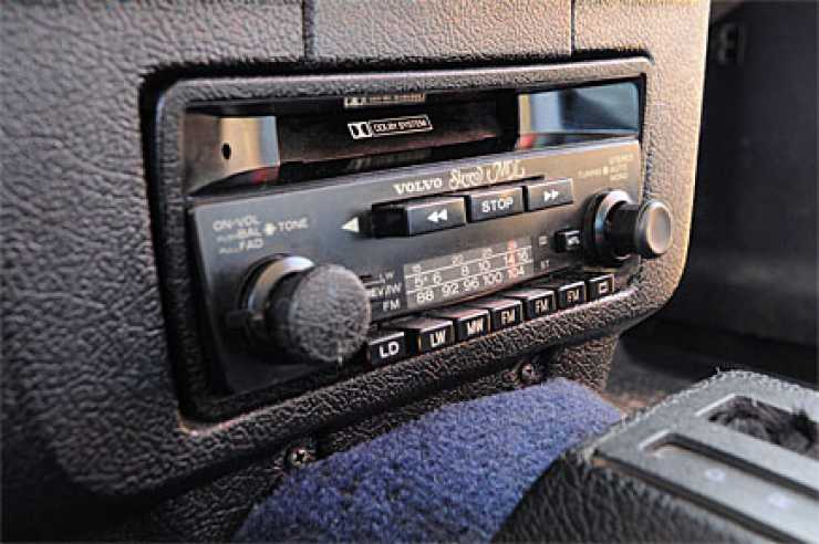 Välljud från Volvo original kassettradio. Fördel om du gillar musik, för radion går inte riktigt att stänga av.