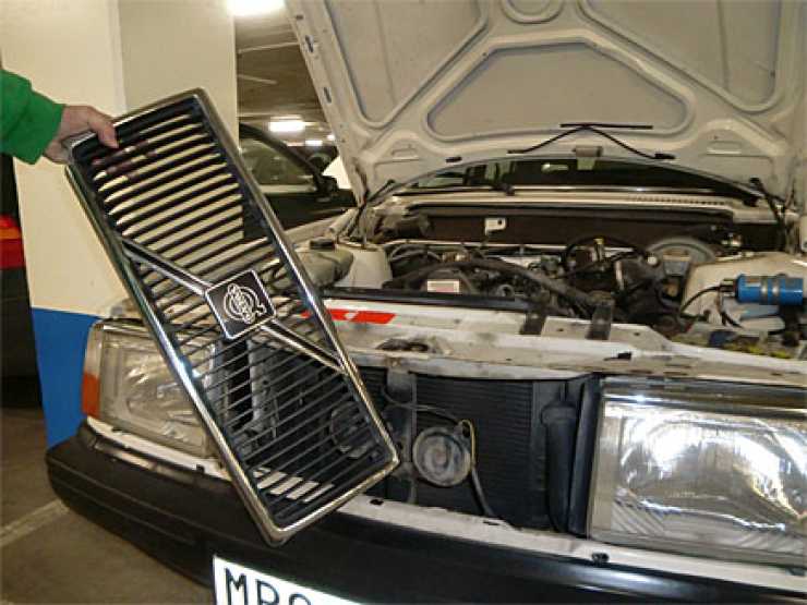 Min motståndare i Klassikerkampen Claes Johansson hade påpekat att grillen inte var riktigt hel. I den ena nederkanten hade en bit tagits bort, kanske för att sladden till motorvärmaren skulle kunna sticka ut. Så när jag såg en grill till salu på Tradera så la jag ett snålt tilltaget bud.