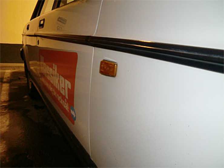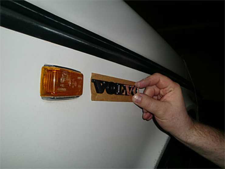 Höger framskärm verkar vara bytt, det syns då den vita färgen är i en något avvikande ton, men också på att Volvoemblemet saknas på den sidan.