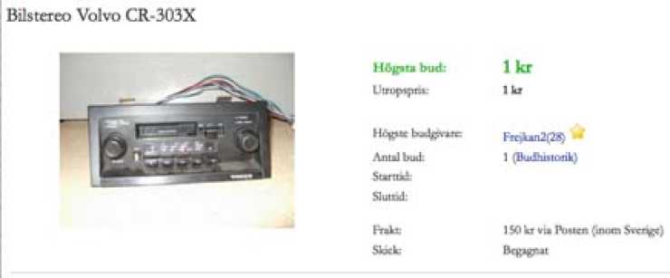 För att hitta en billig original Volvoradio sökte jag på Tradera och jag lyckades vinna en auktion på en CR 303X kassetradio för bara en krona och 150 kr i frakt.