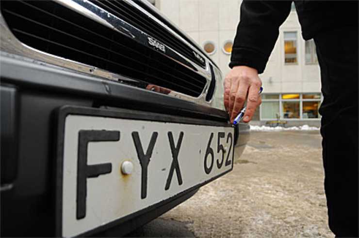 Nummerskyltar av rätt typ! De värdelösa plastskyltarna med lättbortsliten reflextejp har hängt med sedan 1985. Poäng!