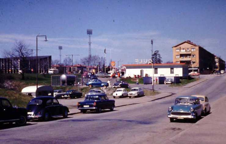 Hittade en mackbild som jag själv tagit 1963. Den blåa Forden som står vid gulftappen är min egen Ford -46 Coupé. Platsen är Blåsut ca 100 meter från nuvarande Globen.