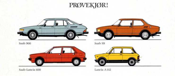 Det var inte bara i Sverige som Saab och Lancia såldes av samma handlare. Kika i broschyren för lilla ärtiga Lancia A112 som den såldes i Norge 1980.