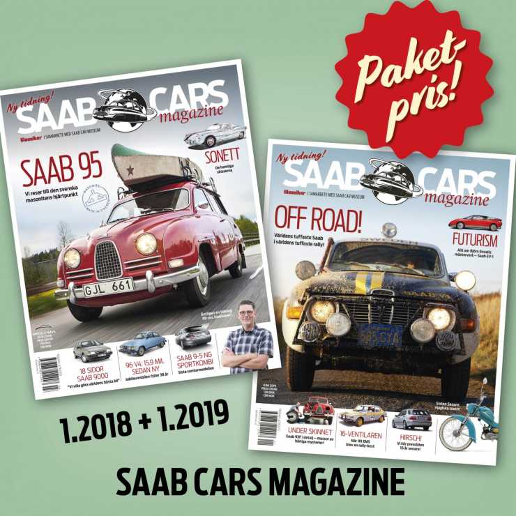 Passa på innan vi har sålt slut lagret. Du vill inte missa de två första utgåvorna av Saab Cars Magazine. Allt från äventyrsresa med Saab 95 kortnos till en djupdykning i Saab EV-1. Vi berättar hela 9000-historien och tar en titt på Sixten Sason verk. Unik läsning från världens mest Saabglada redaktion.