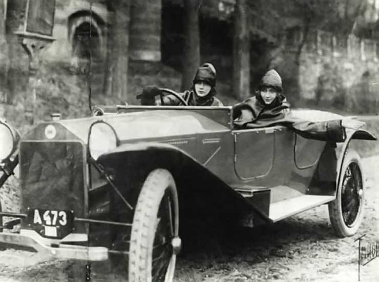 En bild från 1924 med två unga kvinnor i en Lancia Lambda - och de är inte vilka som helst!