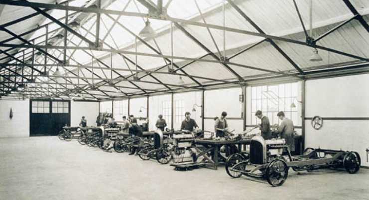 Så i denna nya fräscha hall 1921 byggd enligt konstruktör Paxtons system, i Cricklewood utanför London kan vi se de allra första Bentley-bilarna bli till.