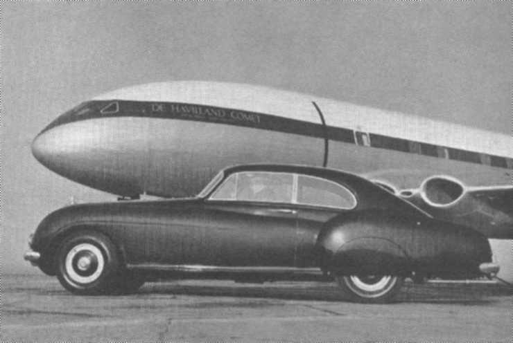 Två av femtiotalets mest linjesköna skapelser, Bentley R-type Continental fastback från Mulliner och De Havilland Comet. De Havilland Comet var det första kommersiella jetplanet i trafik och flög första gången 1949 och sattes i trafik 1952. Trots att detta vackra plan på ett tidigt stadium blev känt som särdeles olycksdrabbat flögs Comets i reguljär trafik ända fram till 1981. Totalt byggdes 114 stycken. Bentley R-type Continental Mulliner coupe presenterades också 1952, och byggdes fram till 1955 i 193 exemplar.