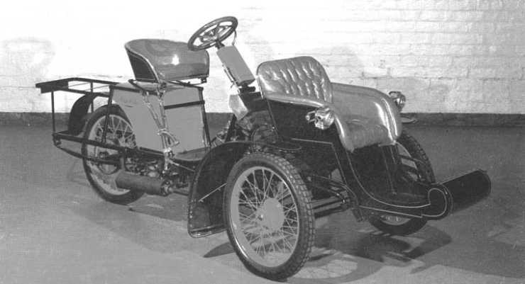 Han slog sig ned i Staines, middlesex och började experimentera med motorcyklar i sitt trädgårdsskjul. 1905 hade han åstadkommit en trehjuling med ratt som näppeligen likande en bil. Den kom att vinna uthållighetsloppet London-Edinburgh samma år.