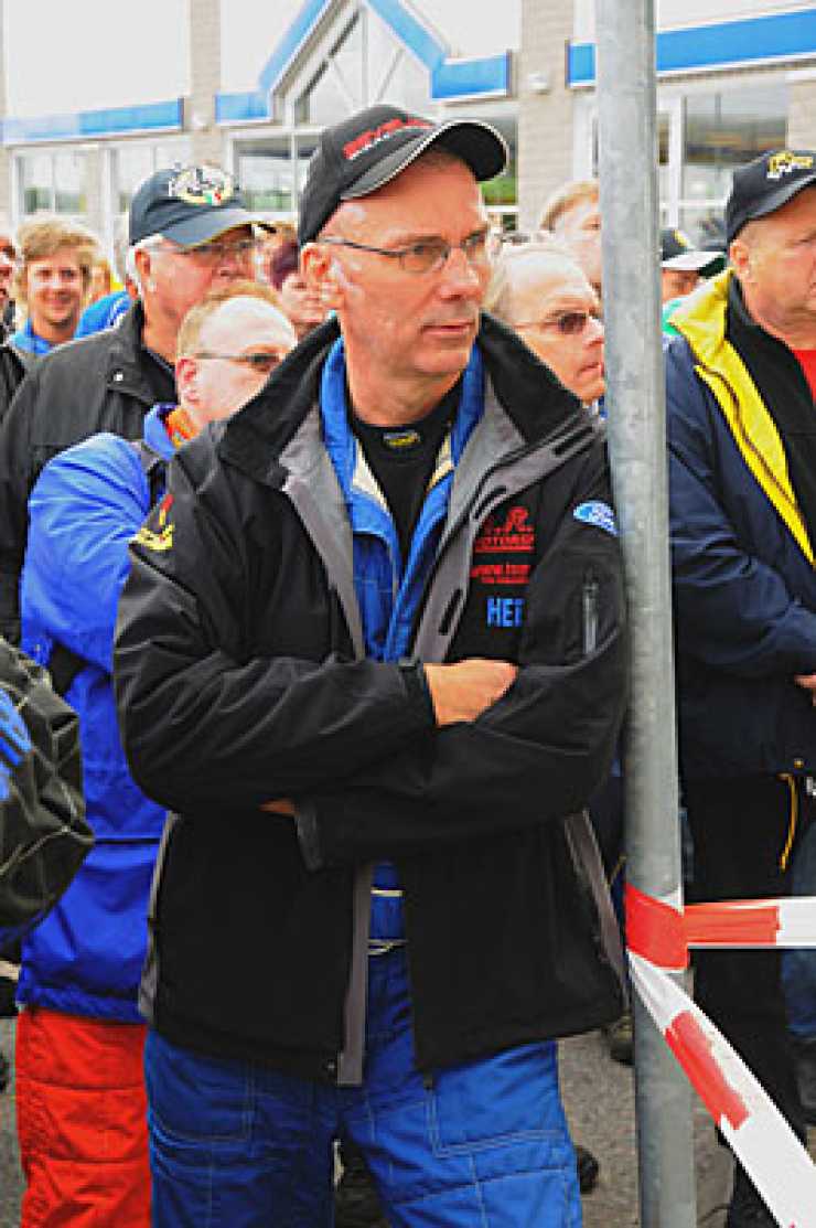 Tony "Roten" Jansson ser lite spänd ut när resultatlistan sätts upp efter Mälarrallyt, men egentligen visste han redan att segern var bärgad.