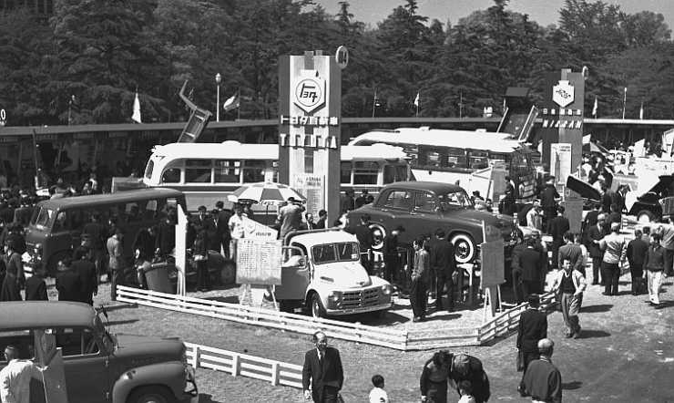 I mitten på bilden ovan syns Toyotas monter med en lätt lastbil som kallades SG, och personbilen RHK Super.