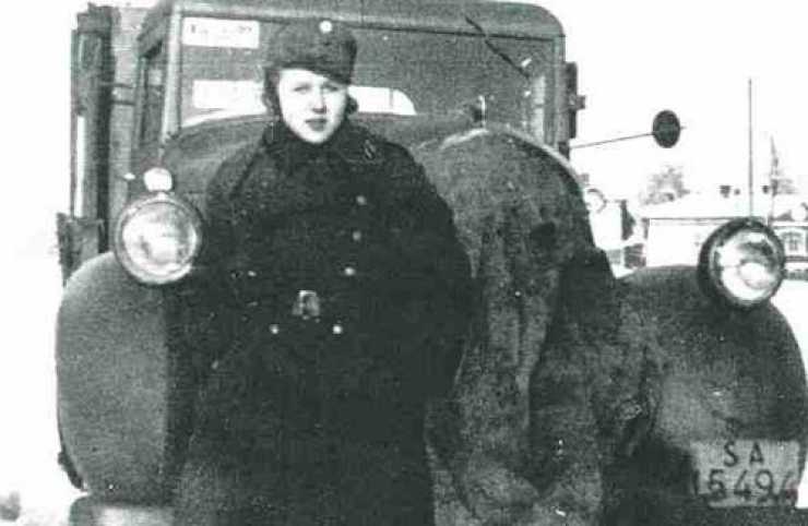 Vid 17 års ålder tog hon körkort och då detta var under kriget kom hon att delta i arméreserven som chaufför. Inledningsvis med att att köra depescher med en Chevrolet men snart körde hon tunga lastbilar med vapen och ammunition ut mot fronten.