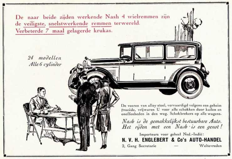 Det här ovanliga annonsklippet från 1928 gäller nya Nash, i en nederländsk koloni.