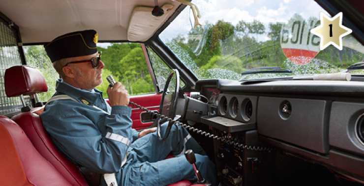 En klassiker som fortfarande har förmågan att sänka andra bilisters tempo på motorvägen. Volvo 145 är något som inte ens Polismuseet har bevarat och det här exemplaret är ovanligt på flera sätt. Bilen användes på polissektionen vid Arméns motorskola i Strängnäs och var helsvart med lilla riksvapnet på framdörrarna och blåljus. 145:an är lastbilsregistrerad och användes för att transportera vågar när poliseleverna skulle lära sig att väga lastbilar. Alla detaljer som var specifika för 140 i polisversion är på plats: polisradio, extra backspegel och förstärkta dörrsidor med förvaringsfack. Polisvolvon är folierad svartvit efter att den varit med i flera filmer.