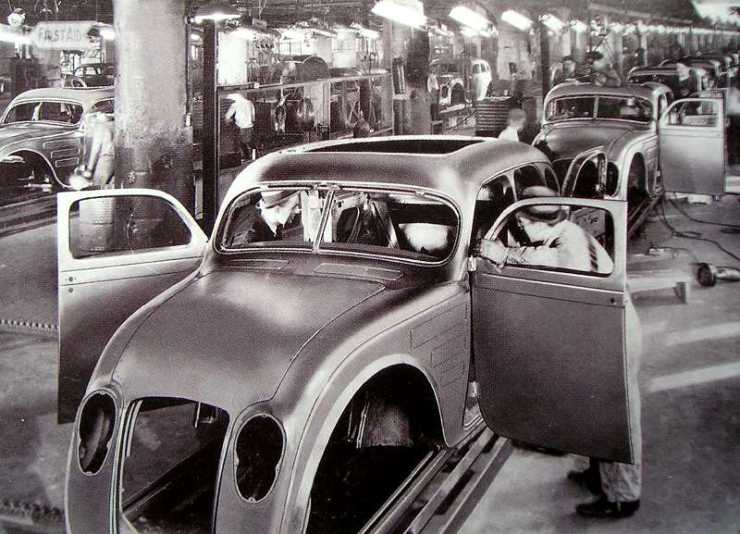 Två år senare på andra sidan jorden, i en gigantisk före detta textilfabrik tar en snarlik vagn form under liknande förhållanden. Det är 1936 och platsen är Kariya, Japan, bilarna som byggs här är första serien av Toyota AA. Året efter flyttade man närmare Tokyo och grundade Toyota city i ännu större domäner.