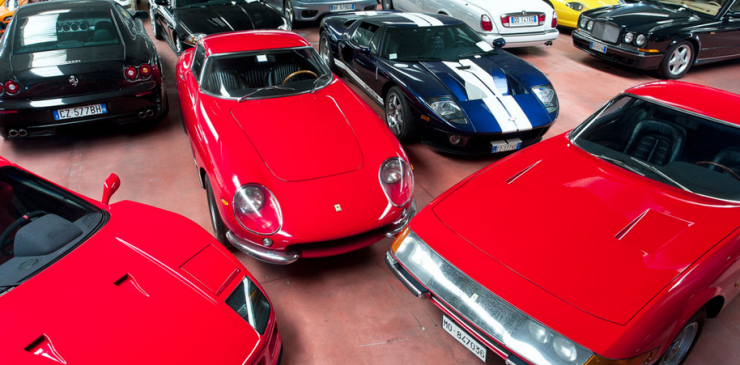 Utbudet är helt otroligt med superbilar som Porsche 959 och mängder av Ferrari och enklare vagnar som Lancia och Alfa Romeo.