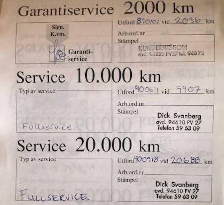 En del av dokumentationen är serviceboken som har flera signeringar av den dåvarande chefen för Volvos experimentbilsverkstad, Dick Svanberg.