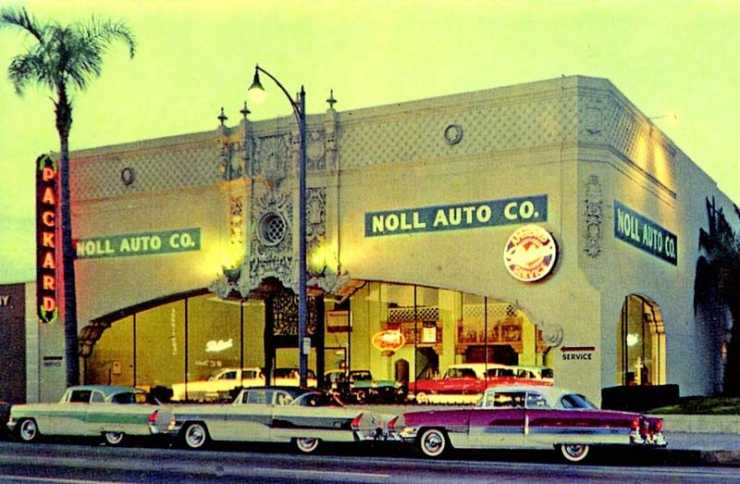 Den här pampiga byggnaden låg i Pasadena Kalifornien och här såldes Packard av Noll Auto.